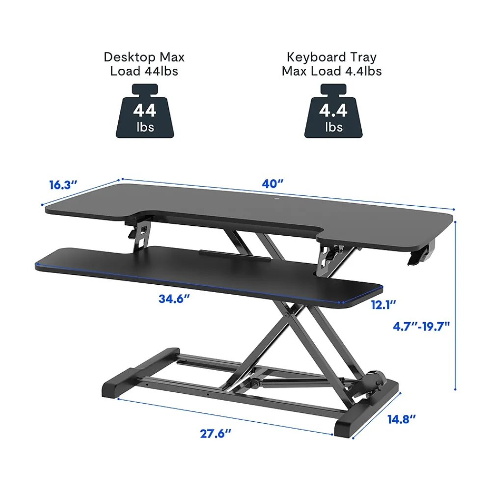 - Standing desk converter provides an easy way to transition between sitting and standing throughout the workday