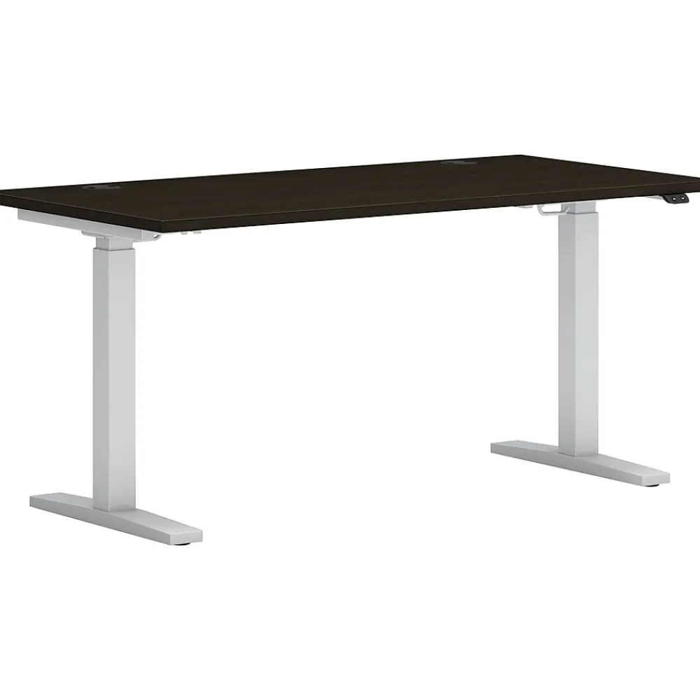 - Sit down or stand tall with a sleek, height-adjustable desktop