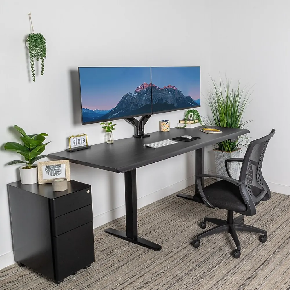 Our Sit-Stand desk is designed to provide exceptional ergonomic comfort and optimize workspace functionality. With a dual-motor system, it allows for quiet and seamless height adjustments between 29.3″ and 48.2″, giving users the flexibility to switch between sitting and standing effortlessly. The spacious 72″ tabletop offers ample room for office equipment, while the beveled front edge is designed to minimize wrist strain. A built-in cut-out ensures efficient cable management, maintaining a tidy and organized workspace. With three memory settings on the user-friendly touch control panel, you can quickly save and switch between your favorite height positions.
