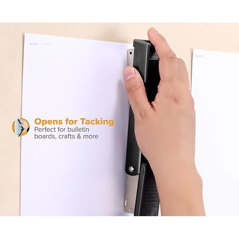 Classic all-metal style with superior reliable performance. A reliable favorite, this traditional-style stapler features a durable all-metal construction for a lifetime of use. Conveniently designed to open for bulletin board tacking, and adjust between temporary or standard stapling. Staples up to 20 sheets of paper. Uses standard staples.