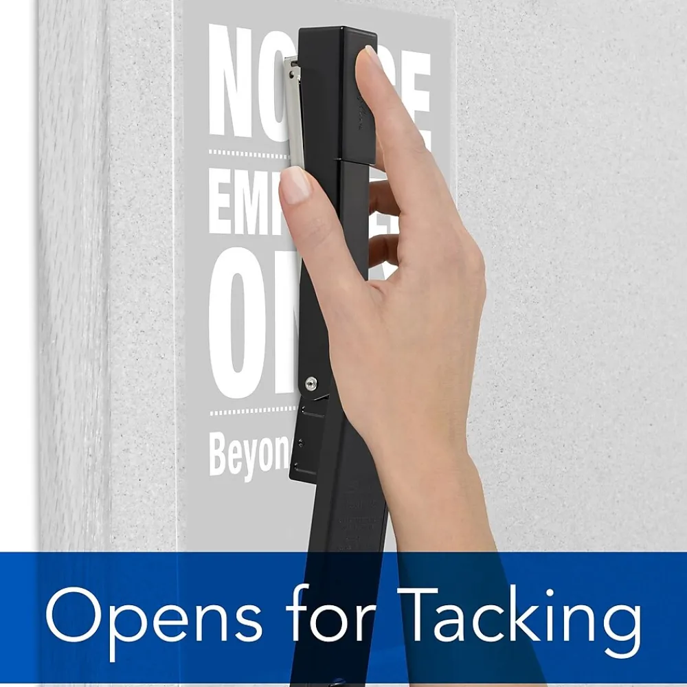 The Swingline® Light Duty Stapler’s metal construction guarantees reliable performance. The stapler’s classic design makes both desktop and handheld stapling comfortable. Full rubber slipper on stapler base prevents skidding on any surface. Staples up to 20 sheets at a time. Also tacks and pins. Pull open to post items to tackable surface and reverse the anvil to instantly create a temporary pin staple.