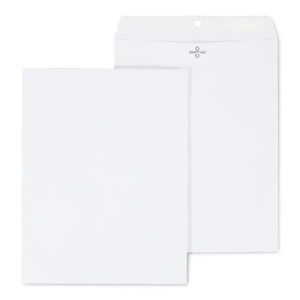 Use these Staples white wove envelopes to keep papers protected. The white paper of these envelopes provides the high contrast needed to make labeling easy to read, while the gummed flap and reusable metal clasp help ensure that enclosed documents stay safe and private. These Staples white wove envelopes are ideal for storing and mailing important files.