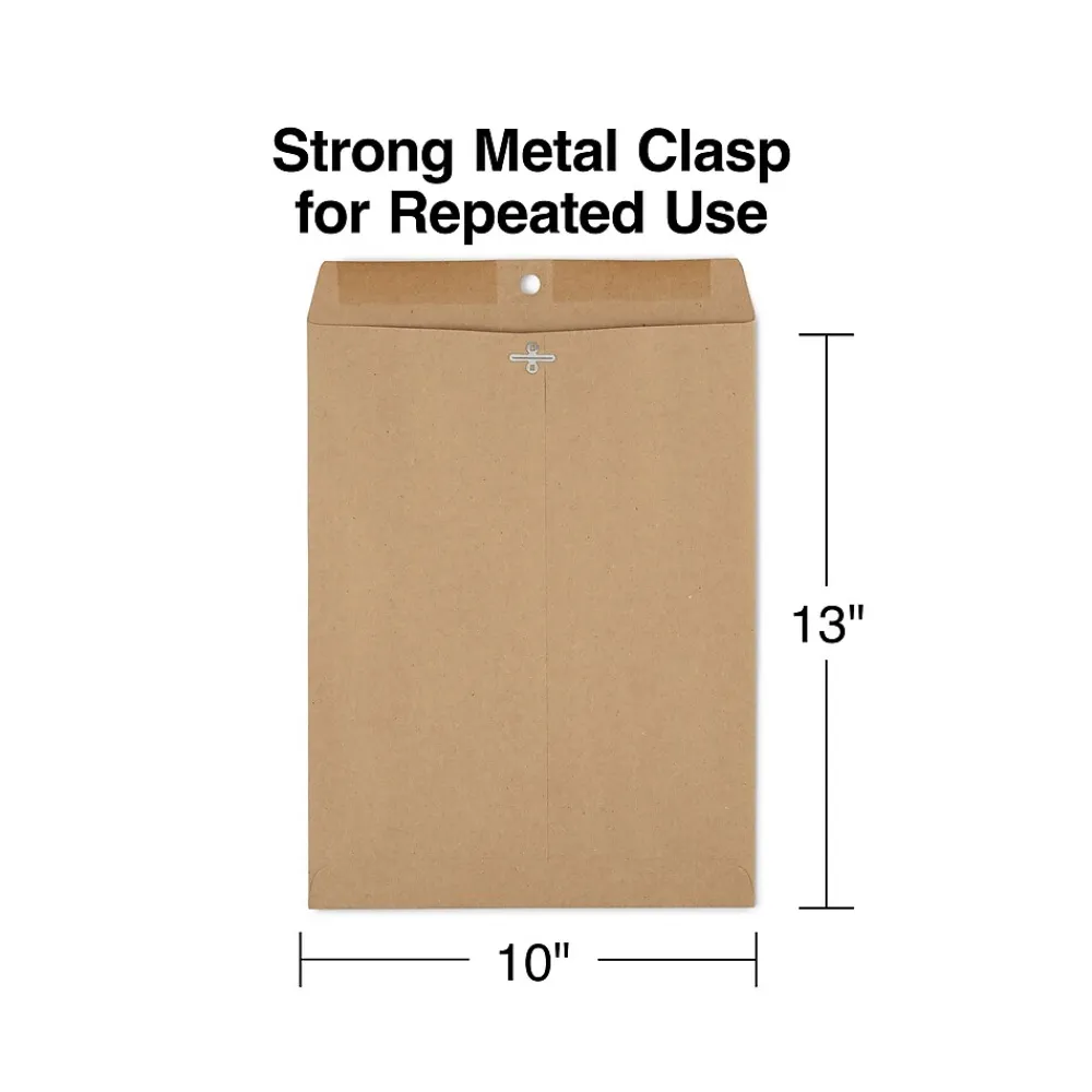Give mailings a professional touch with these Staples 100 percent recycled envelopes. The gummed flaps feature clasp closures to ensure items stay stored securely inside, while the natural brown color offers a perfect background for white shipping labels. These Staples 100 percent recycled envelopes are crafted from 24-pound stock to withstand wear and tear during the mail-handling process.