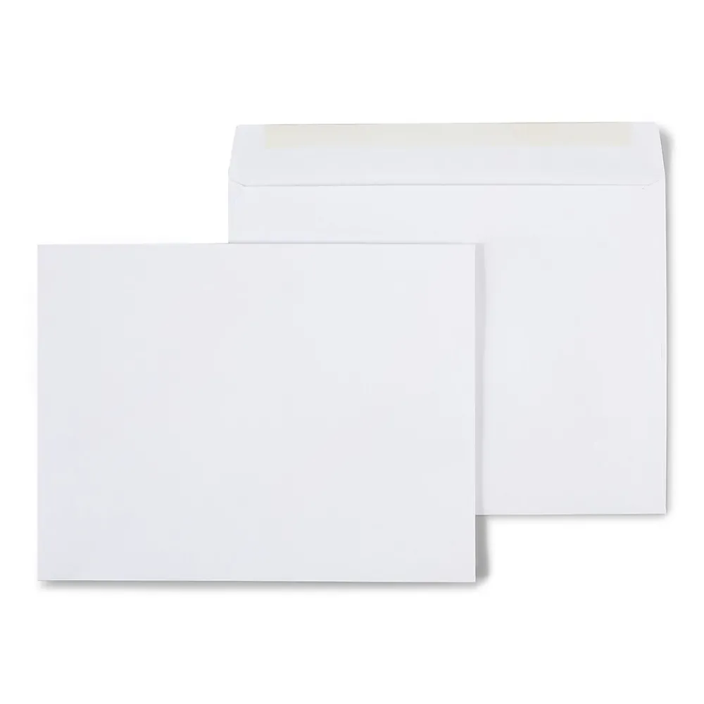 Send large packets and catalogs easily with these white wove side-opening booklet envelopes. Each one has a flap coated with moistenable glue for easy sealing, while the side-opening design makes it easy to insert and remove large documents. These Staples side-opening booklet envelopes come in a box of 100 units and are constructed with 28-pound wove paper for a clean, professional look.