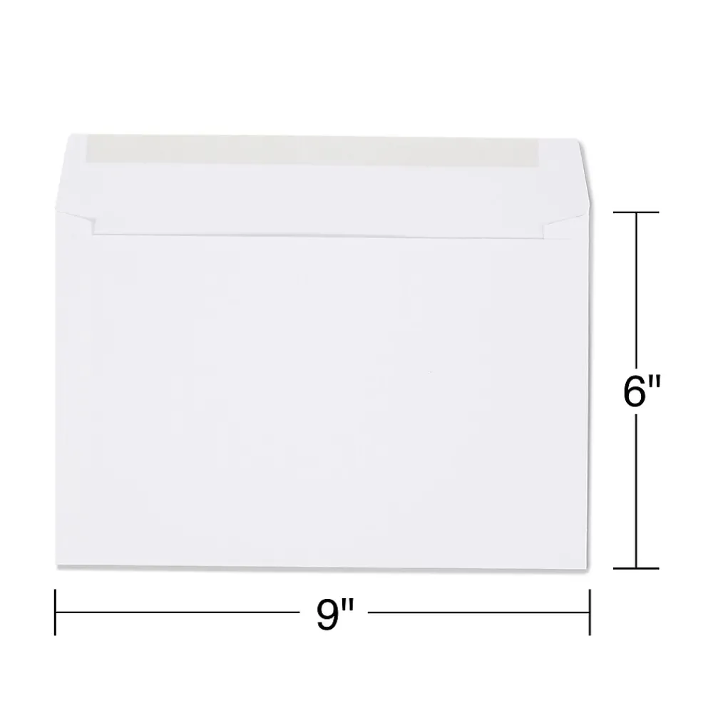 Send correspondence with these white gummed-flap wove booklet envelopes. Each one is heavily gummed on the flap to provide a strong seal, while the 24-pound white wove material provides durability and a bright background to contrast against dark text, promoting readability. These Staples white gummed-flap side-opening wove booklet envelopes come in a pack of 250, so large mailing tasks are manageable.