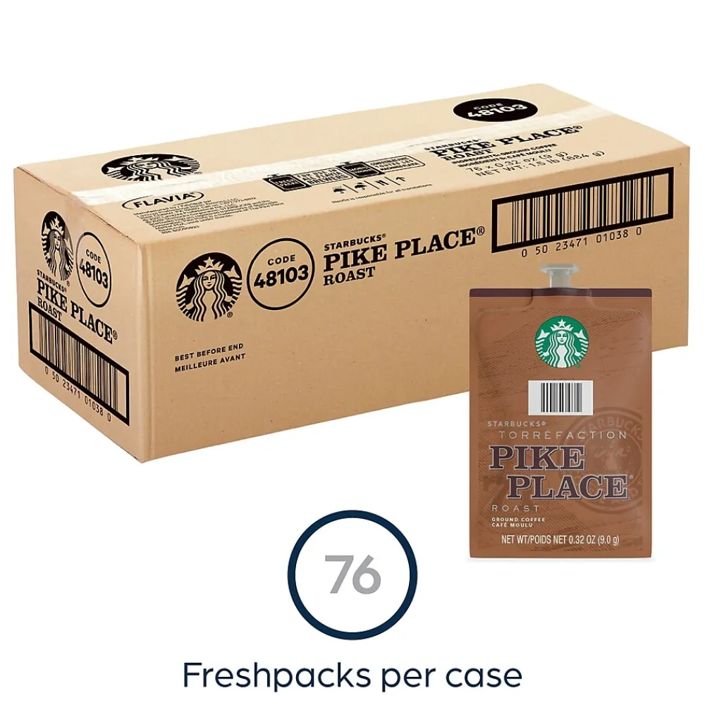 Sip on a hot, balanced cup of this ground coffee. With 80 to a carton, it’s easy to replenish the coffee supply for the lobby, break room, or customer waiting area. These Starbucks Pike Place Freshpacks are filled with a rich medium roast that offers hints of toasted nuts and touches of cocoa for a smooth, sweet beverage.