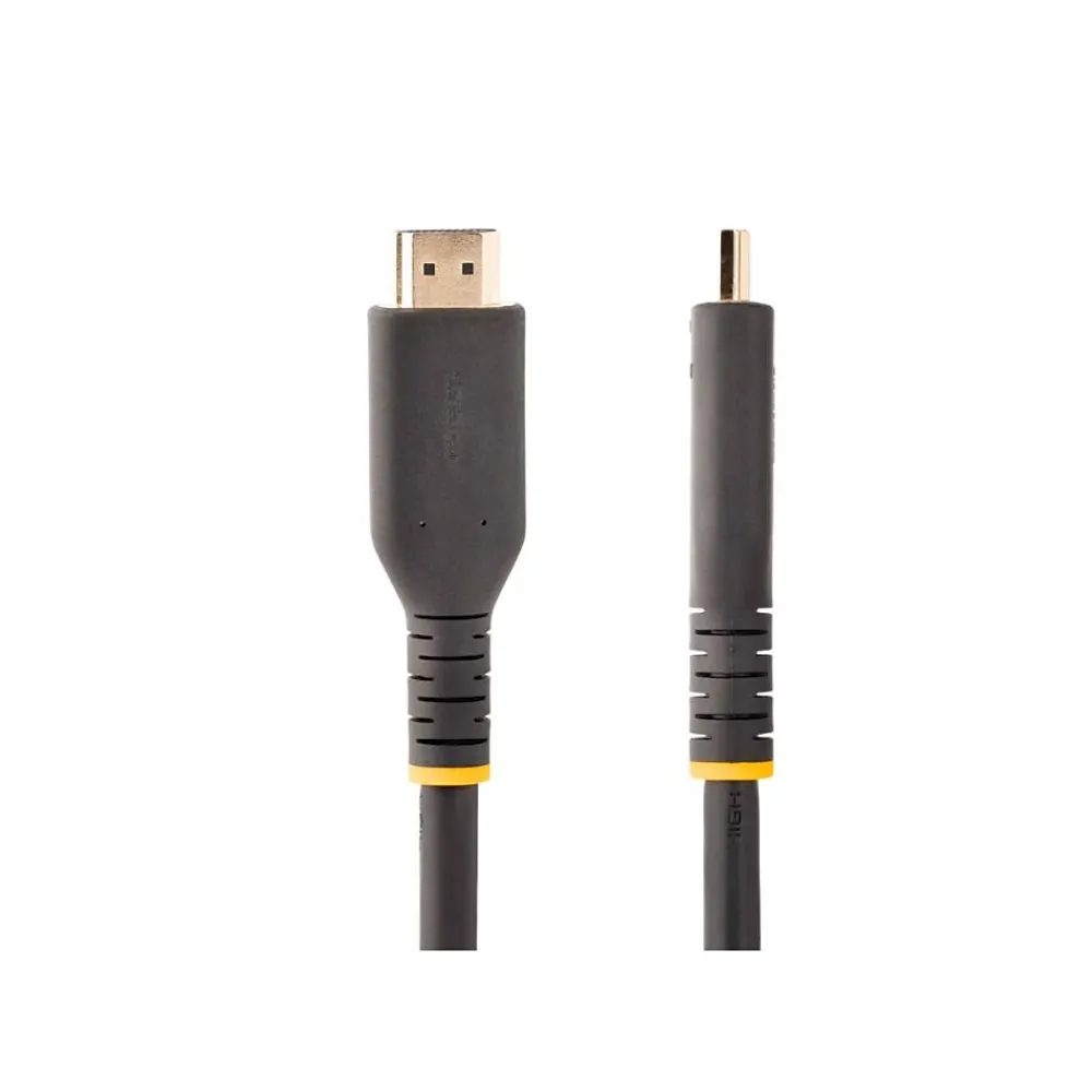 - The cable features built-in amplifier circuitry, which actively boosts the HDMI signal, with no external power required. It is the perfect solution for longer transmissions without any signal loss. It features source and display labels on the connectors to ensure the display and source are properly connected.