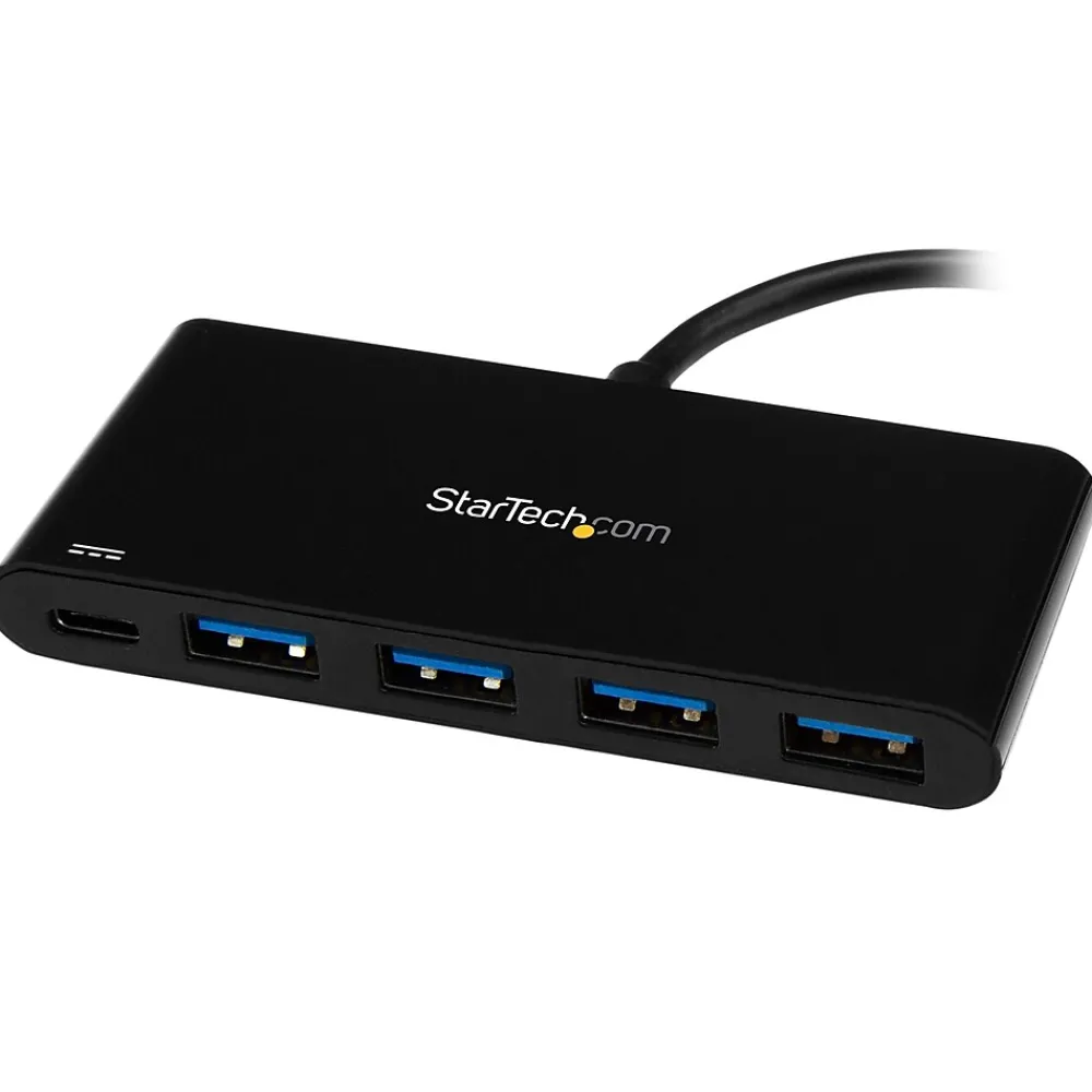 Turn a USB Type-C port on your laptop into four USB Type-A ports (5Gbps), plus power and charge your laptop. This compact USB 3.0 hub lets you add four USB-A ports to your laptop, with support for USB power delivery. This means that you can power and charge your laptop through its USB-C port while simultaneously powering the hub. With its integrated USB Type-C cable and small-footprint design, this versatile hub offers a perfectly portable solution for connecting devices that require traditional USB Type-A ports to your USB-C or Thunderbolt 3 equipped computer. Take it with you wherever you go With its compact and rugged design, you can take this portable USB 3.0 hub anywhere you go. Because it’s so compact, it’s easy to tuck into your laptop bag and only takes up a small amount of desk space when you connect it to your workstation. For portable applications, having the integrated host (USB-C) cable means one less thing to remember to carry with you. Carry fewer cables and power adapters This USB-C 3.0 hub supports USB Power Delivery 2.0, so instead of carrying multiple cables and power adapters, you can use your laptop’s USB-C power adapter to power both your laptop and the hub. By using just a single power adapter instead of two, you can eliminate clutter and hassle when you work. Add four USB 3.0 ports in seconds This USB hub is multi-platform compatible, which means it will work with a wide range of USB-C laptops that use a USB-C power adapter. It also works with a range of operating systems such as Windows , macOS, Linux and Chrome OS. It installs automatically once you connect it to your laptop, so you can be up and running in seconds. The HB30C4AFPD is backed by a StarTech.com 2-year warranty and free lifetime technical support.