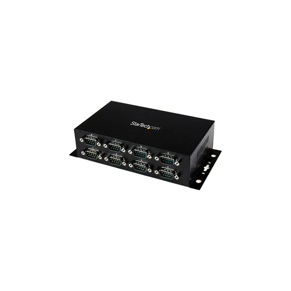 Startech.comĀ® 8 Port adapter features metal construction that adds durability in harsh environments. Adapter has sturdy wall-mounting brackets and top-hat DIN rail clips.