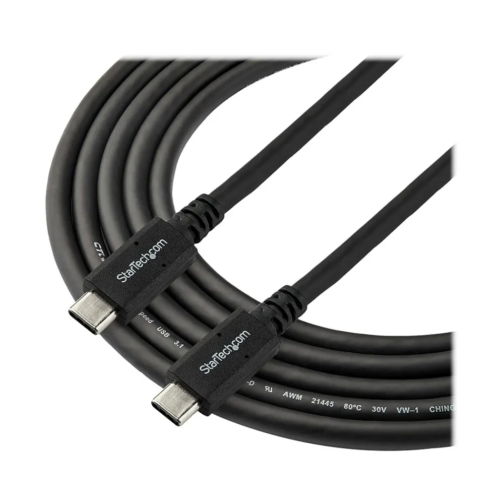 With up to 5A (100W) of power output, you can use this StarTech USB-C to USB-C cable to power and charge a USB-C laptop, such as your Apple MacBook Pro, MacBook or Google Pixelbook, using a USB-C wall charger, car charger or power bank. Or, you can power your laptop from a USB-C docking station. You can also power your USB-C hard drive from the USB-C port on your laptop.