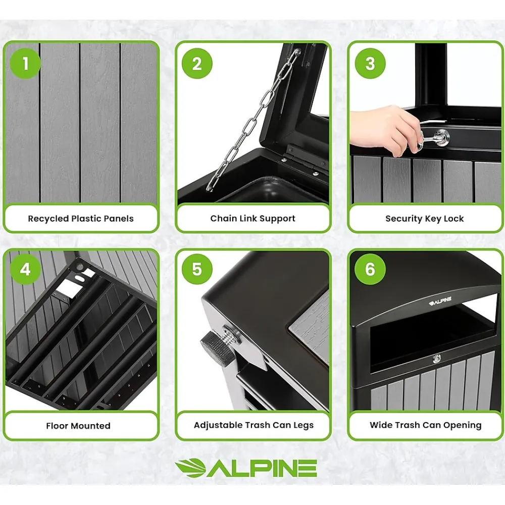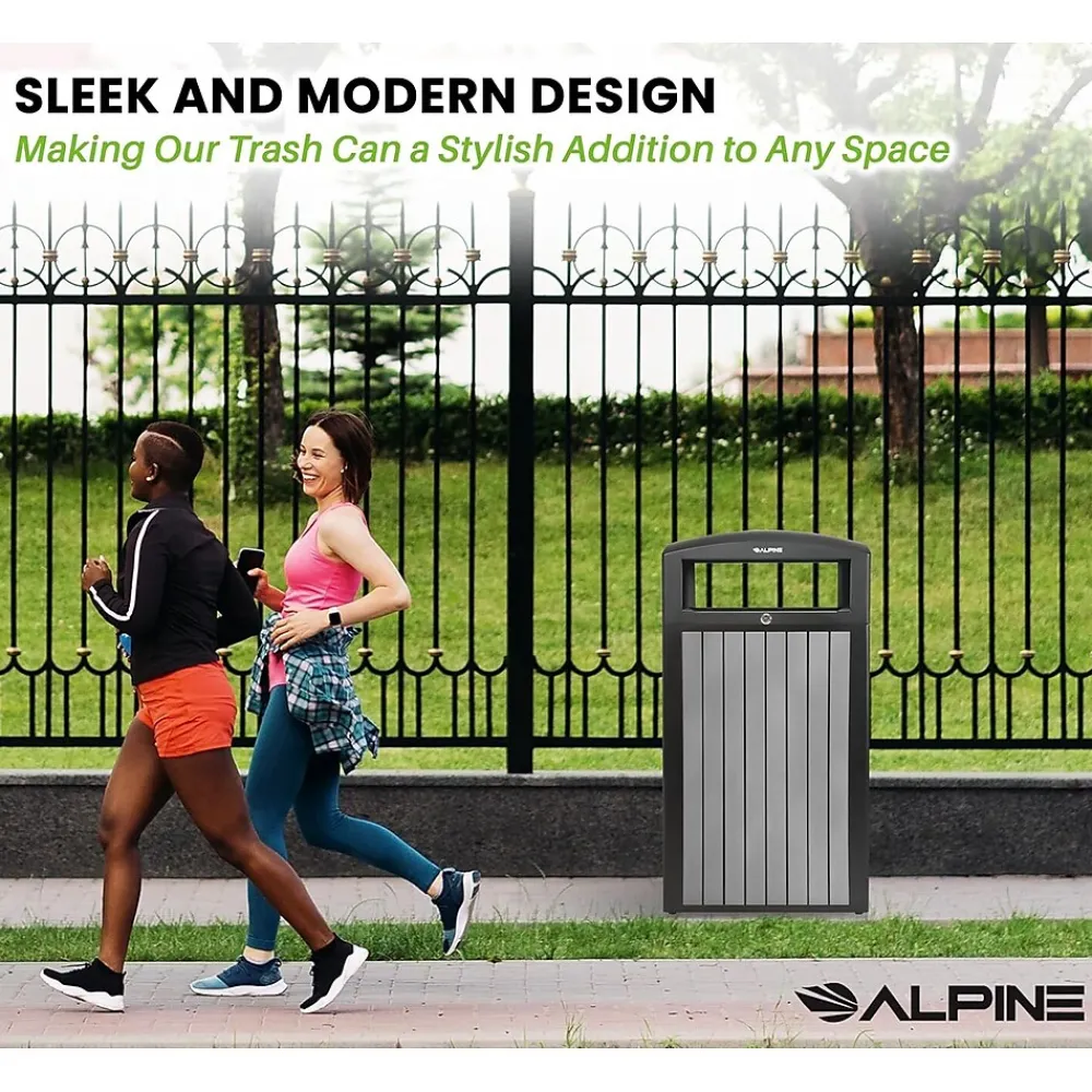 - The outdoor trash can features recycled plastic grey exterior adds an earthy and natural aesthetic, allowing it to blend seamlessly into its outdoor environment