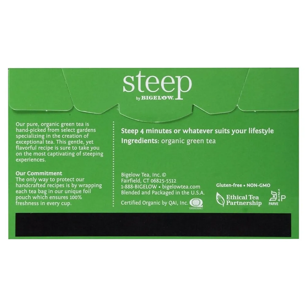 Enjoy a subtly astringent and flavorful beverage with these green tea bags. They’re made from organic, kosher and non-GMO ingredients and are gluten-free, and with 20 to a box, there’s enough for weeks of drinking enjoyment. These Steep by Bigelow tea bags are individually sealed in foil to ensure freshness.