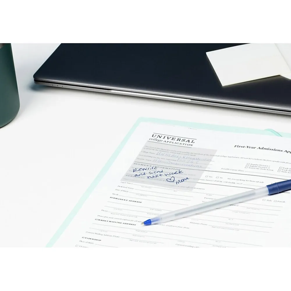 Post-it Transparent Notes are clear notes for use in books, crafts or other projects where you need to make notes on items and see underneath easily. The standard 2.8 in. x 2.8 in. size is great for making notes in textbooks, as you can see through to highlight or call out specific content. Use for crafts to trace images or patterns from other items. And like all Post-it Products, these notes feature a unique adhesive designed for paper that removes cleanly without damage, so you can remove the notes when done with no worries. Post-it Transparent Notes come in 1 Pad/Pack, 36 Sheets/Pad.