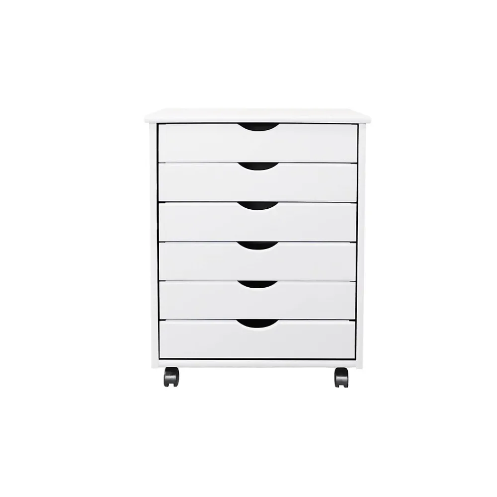 This six-drawer roll cart on wheels features deep drawers to hold reams of paper. Perfect for scrapbooking, crafts, kitchens, garages, offices, or end tables.