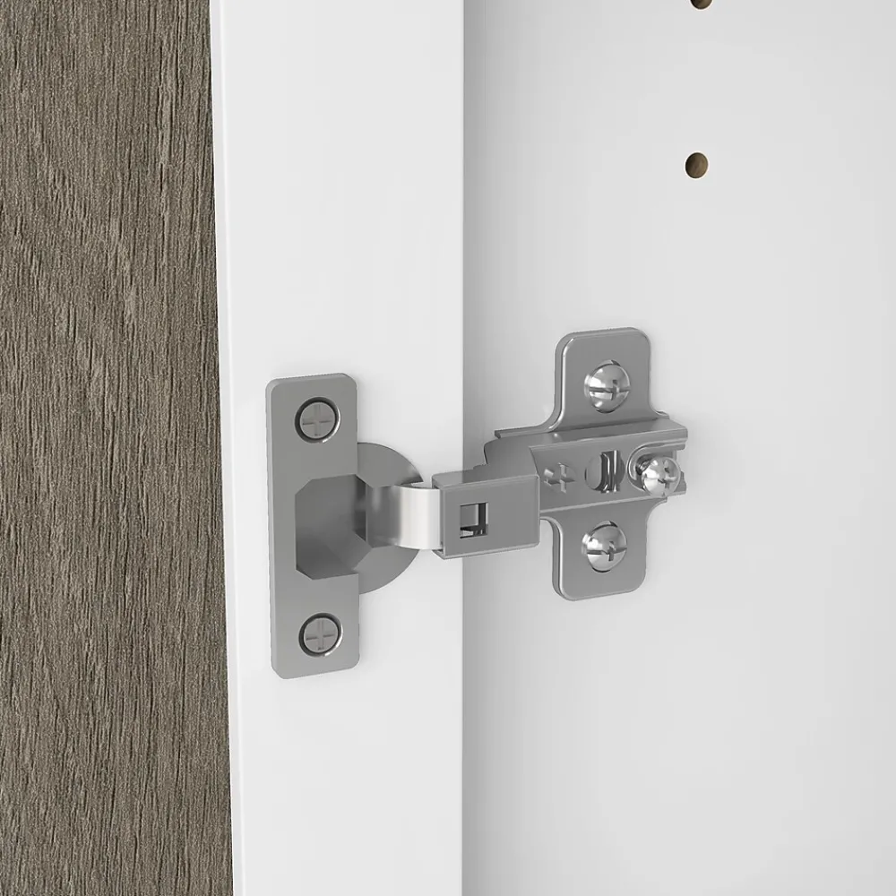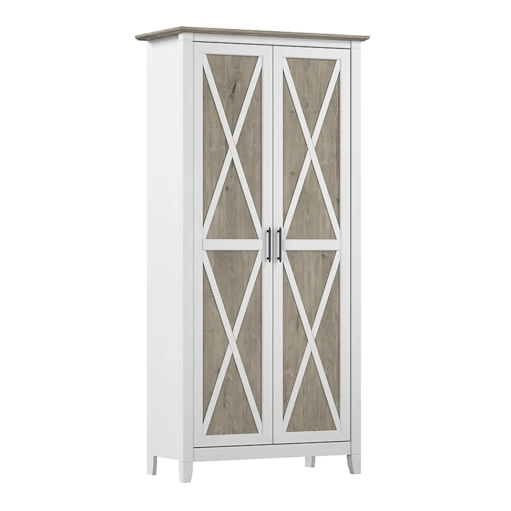 The Bush Furniture Key West Tall Storage Cabinet with Doors and Shelves offers an organization solution that brings a touch of casual style to any residential space. Featuring a design that’s as versatile as it is practical, this 2 door farmhouse cabinet provides an ideal way to store important work materials, a collection of books or other media, miscellaneous household items and more. Two shelves are fixed for stability while three can be raised or lowered to accommodate items of various sizes. Each shelf supports up to 25 pounds, so storing larger materials and equipment is never a problem. The stable design also includes wall attachment hardware for family-friendly safety in any home office or living space. This tall accent cabinet with doors has been meticulously tested to meet or exceed industry standards for safety and performance and is backed by a 1 Year Manufacturer’s Warranty.