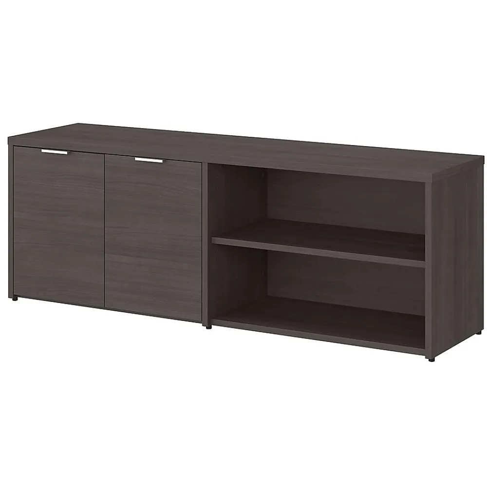 Use the Bush Business Furniture Jamestown low storage cabinet with doors and shelves to organize supplies anywhere in your office or to build an L-shaped desk. Featuring a multipurpose design that’s both stylish and practical, the Bush Business Furniture Jamestown low storage cabinet with doors and shelves makes a great addition to any modern professional office. This versatile organizer can be used on its own as a storage credenza or as a return to form an L-shaped desk with coordinating 60″W and 71″W work surfaces (sold separately). Open and closed compartments each include one adjustable shelf to accommodate a variety of materials and decorations. Named in honor of Bush Business Furniture’s Western New York headquarters, the Bush Business Furniture Jamestown collection celebrates both the brand’s heritage and its commitment to providing solutions that meet the evolving needs of professional offices. This commercial-grade storage cabinet is tested to meet ANSI/BIFMA standards for safety and performance and is backed by a 10-year warranty. American-made with US and imported parts.