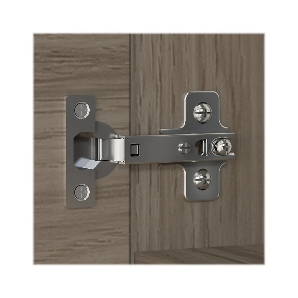 With its sophisticated style and practical design, the Bush Business Furniture Office 500 storage cabinet with doors is a perfect fit for modern workspaces. This storage cabinet offers an efficient and secure way to organize materials in any workspace. With one fixed shelf and one adjustable shelf that support up to 50 lbs. each, this two-door cabinet is a perfect solution for storing office supplies and reference materials of various sizes. Doors feature smooth Euro-style hinges for easy access to contents and can be locked to protect valuable items. The back panel includes a built-in wire management grommet to accommodate electronic devices like a laptop or router and modem set. A single accent cabinet accepts the coordinating 36″W bookcase hutch while a set of two can accept a 72″W desk hutch (hutches sold separately). This locking storage cabinet is tested to meet ANSI/BIFMA standards for safety and performance and is backed by a 10-year warranty. American-made with US and imported parts.