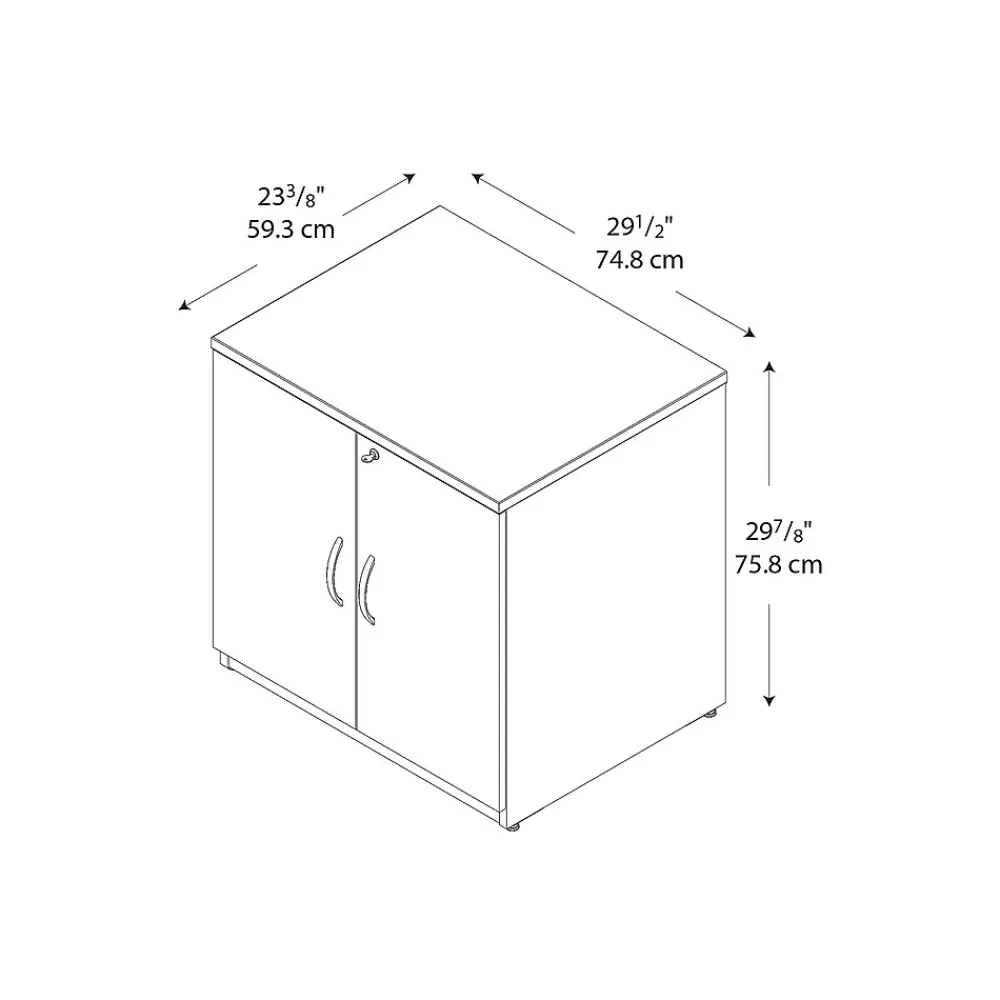 Bush Business Furniture Westfield Collection 30W Storage Cabinet finished in Mocha Cherry for classic styling with clean lines. Cabinet includes Euro-style self-closing hinges and a lock to secure supplies. The interior offers ample space with an adjustable shelf to make room for electronics, printers and more. Constructed with 100% thermally fused laminate for durability and superior resistance to scratches and stains. Integrated wire management grommet located in the back panel and adjustable leveling glides help compensate for uneven floors. Combine the 30W Storage Cabinet with a 30W Hutch or place Hutch at the end of Westfield desk to increase storage and function. Meets ANSI/BIFMA test standards in place at time of manufacture. The Westfield Collection is backed by the Bush Business Furniture 10-Year Warranty. American made with U.S. and imported parts.
