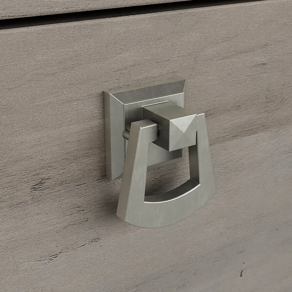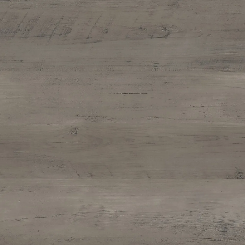 - Made of laminate over engineered wood and comes in driftwood gray finish