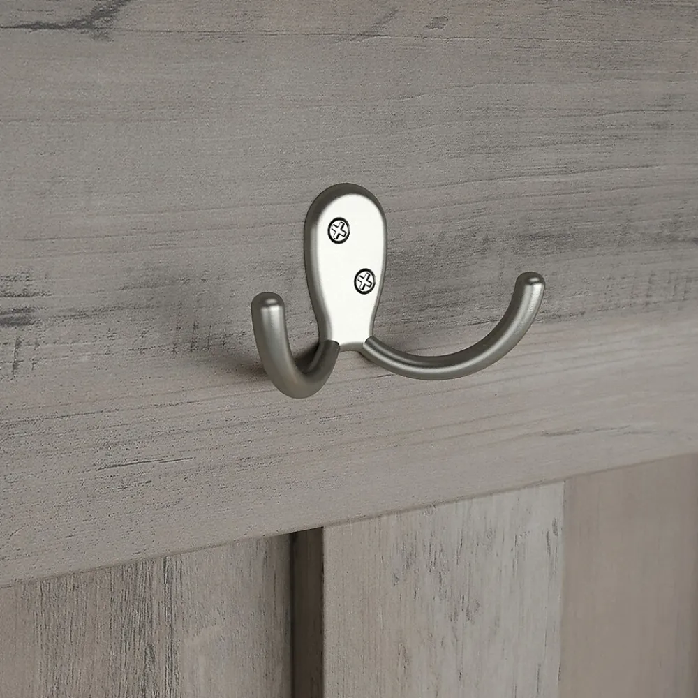 - Hall tree mounts to shoe bench and features three double prong hooks to hang coats, scarves, and hats