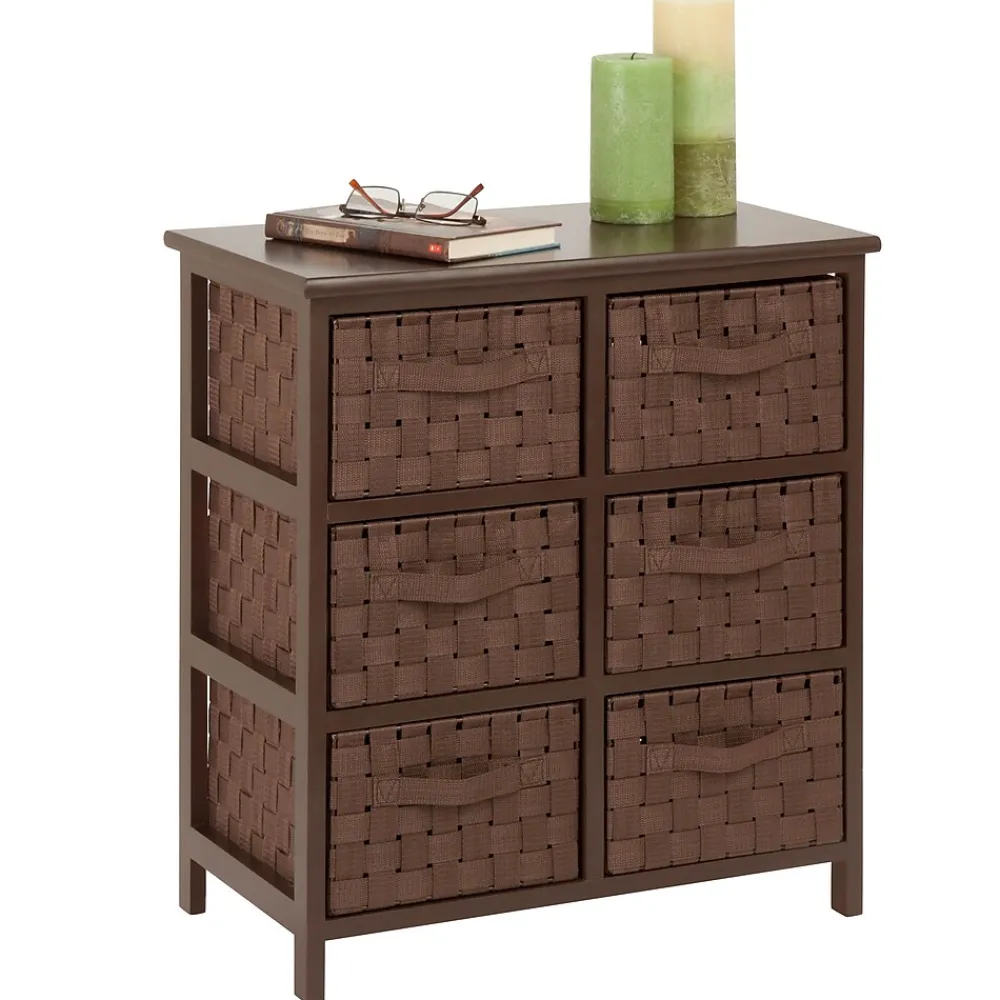 Honey-Can-Do TBL-03758 6-Drawer Storage Chest, Java Brown. Getting organized has never looked better with this impressive double woven chest. This storage unit has six spacious drawers to hold clothes, tools, office supplies or anything else that needs tucked away. A natural wood top surface provides even more storage space and can double as a night stand. Coordinates with other pieces in Honey-Can-Do’s collection of double woven products.