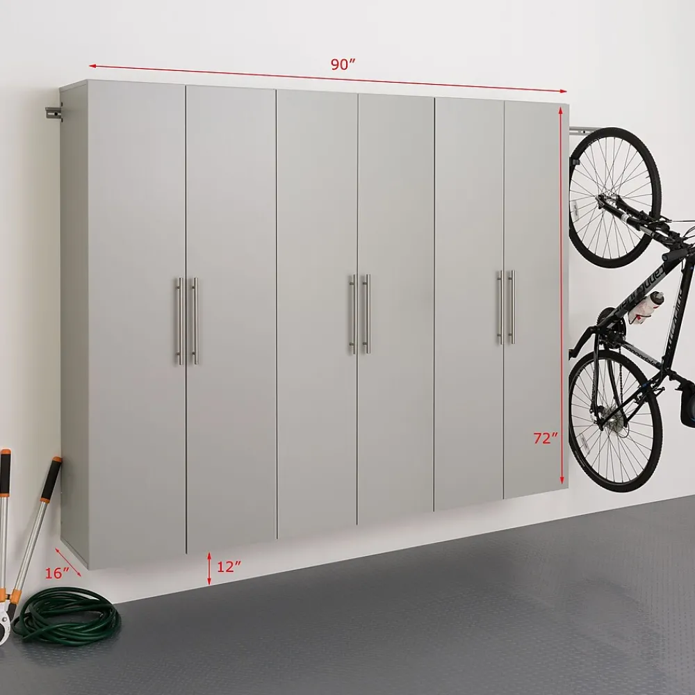 - Includes all hanging rails and fastening bolts, an instruction booklet for easy assembly, mounting system and accessories, 30″H x 72″W x 12″D 3 large storage cabinets