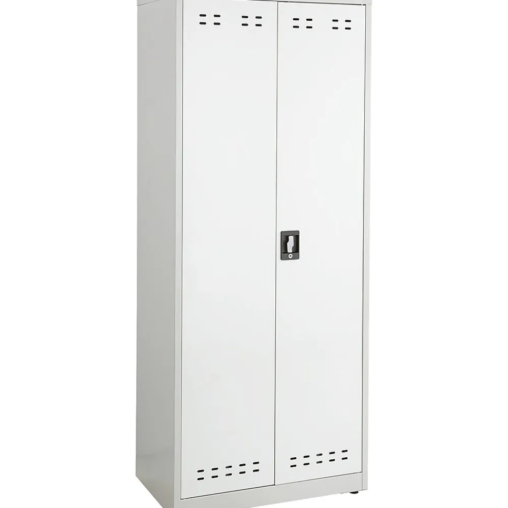 - The cabinet features a recessed locking door handle, with a three-point locking design and adjustable leveling glides to ensure there isn’t any wobbling