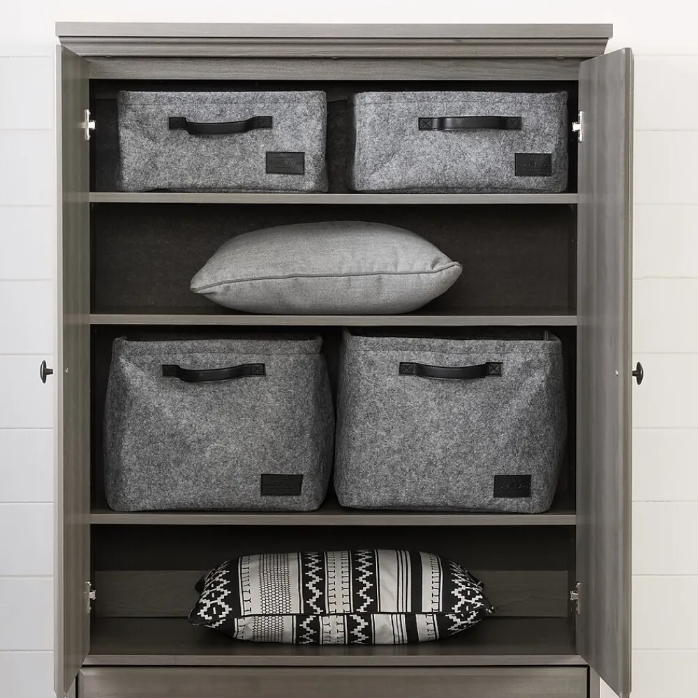 For maximum storage space, make this attractive wardrobe a part of your home⦠and jazz up your decor! This large, versatile piece will work well in any room in your home. And for even more storage space, add some South Shore felt baskets!