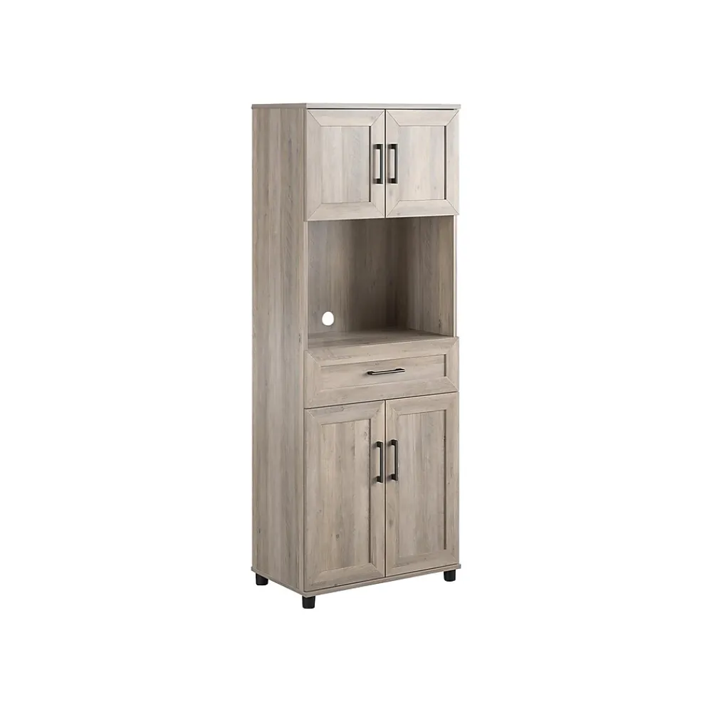 Skip the expensive coffee shops, and bring it all home with your System Build Dwyer tall coffee bar with one drawer and four doors. The bar features a rustic gray oak finish and clean modern farmhouse hardware. Simple yet essential in your home office or kitchen, with space to store everything you need to make the perfect cup of joe. Carefully crafted with modern European-style hinges, adjustable shelving, and durable side-mounted drawer slides for lasting enjoyment. Pair your coffee bar with the matching System Build Dwyer pantry (not included) to create the perfect kitchen combo.