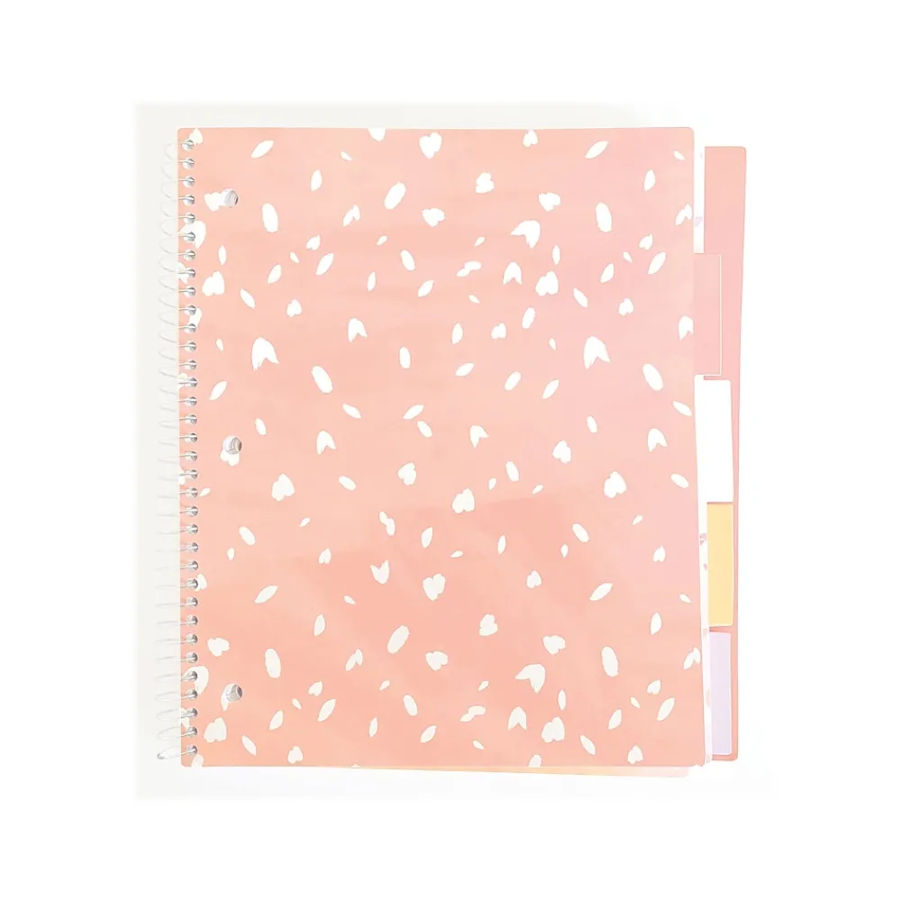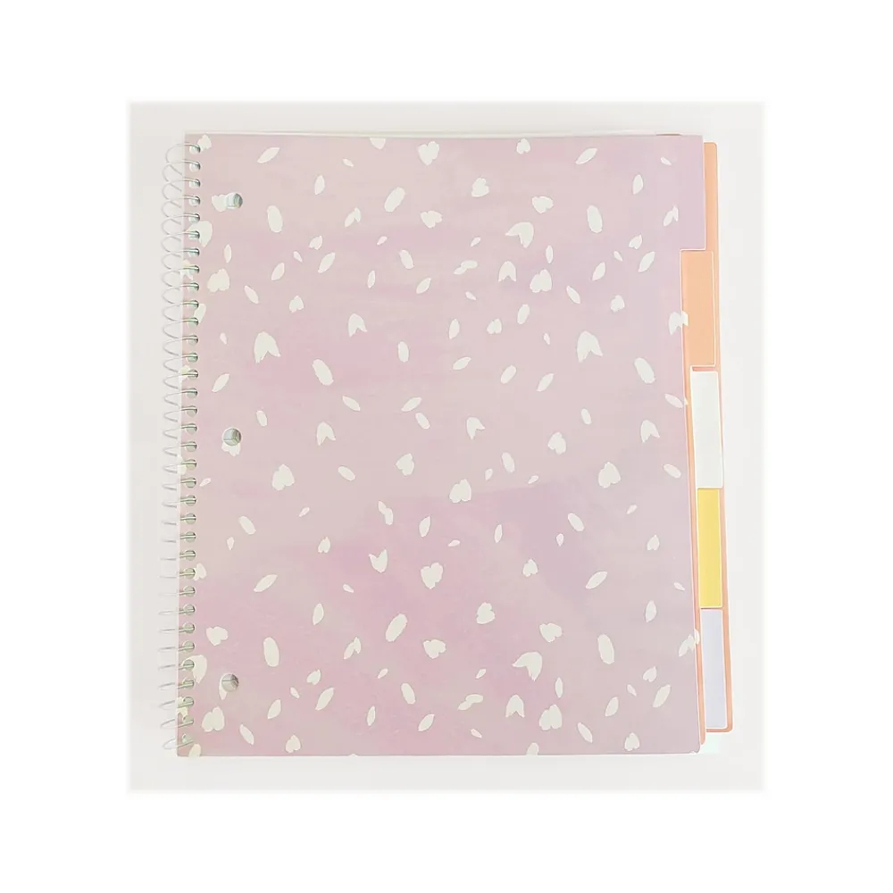 The Silver Lining five-subject notebook from Carolina Pad features inspirational quotes with a watercolor art look. This five-subject notebook was designed with care and consideration for its purpose. Multi-subject organizing is made simple and secure. Each section features a divider with pocket and die-cut tab. The front cover is made of heavy-duty poly that extends to cover and protect the tabs, along with the extended heavy-duty board back cover. Under the poly front cover is a secondary board cover. Contains 150 perforated three-hole punched college-ruled sheets that are wood-free. The silver-tone metal binding holds the pages securely.