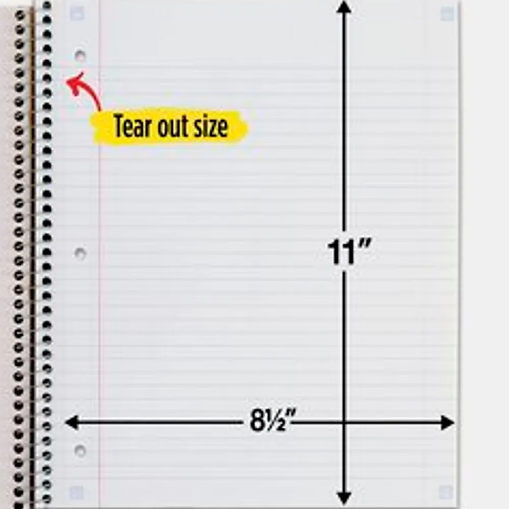 - 1 subject notebook has 100 double-sided, college ruled sheets that fight ink bleed and are perforated for easy tear out. Sheets measure 8 1/2″ x 11″ when torn out.
