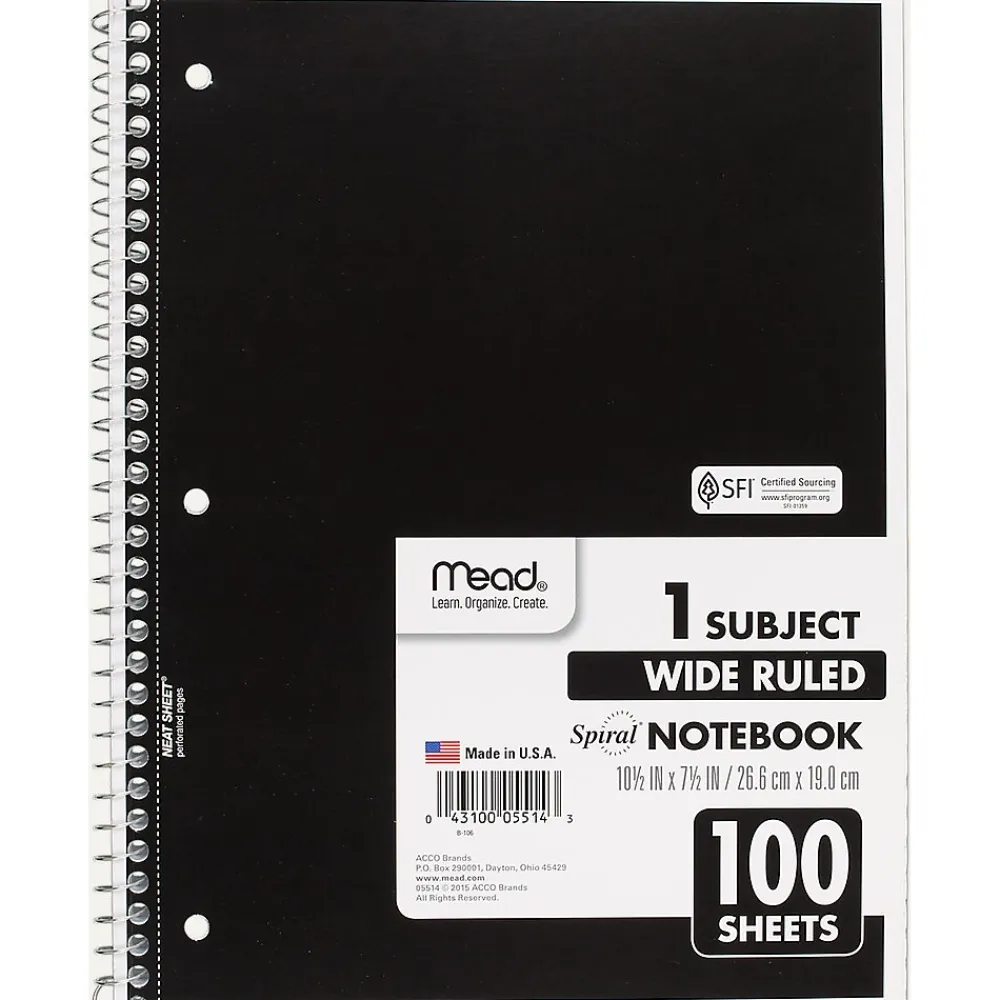 This basic 1 subject notebook is wide ruled and available in a variety of colors. It’s versatile and perfect for a variety of uses including in-class notetaking and recording meeting notes. This is a single notebook and the color is choosen at random from the available colors shown.