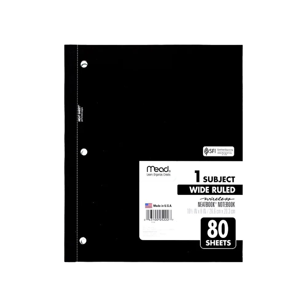 Subject Notebooks|Mead Wireless Neatbook 1-Subject Notebooks, 8″ x 10.5″, Wide Ruled, 80 Sheets, Each (05222)