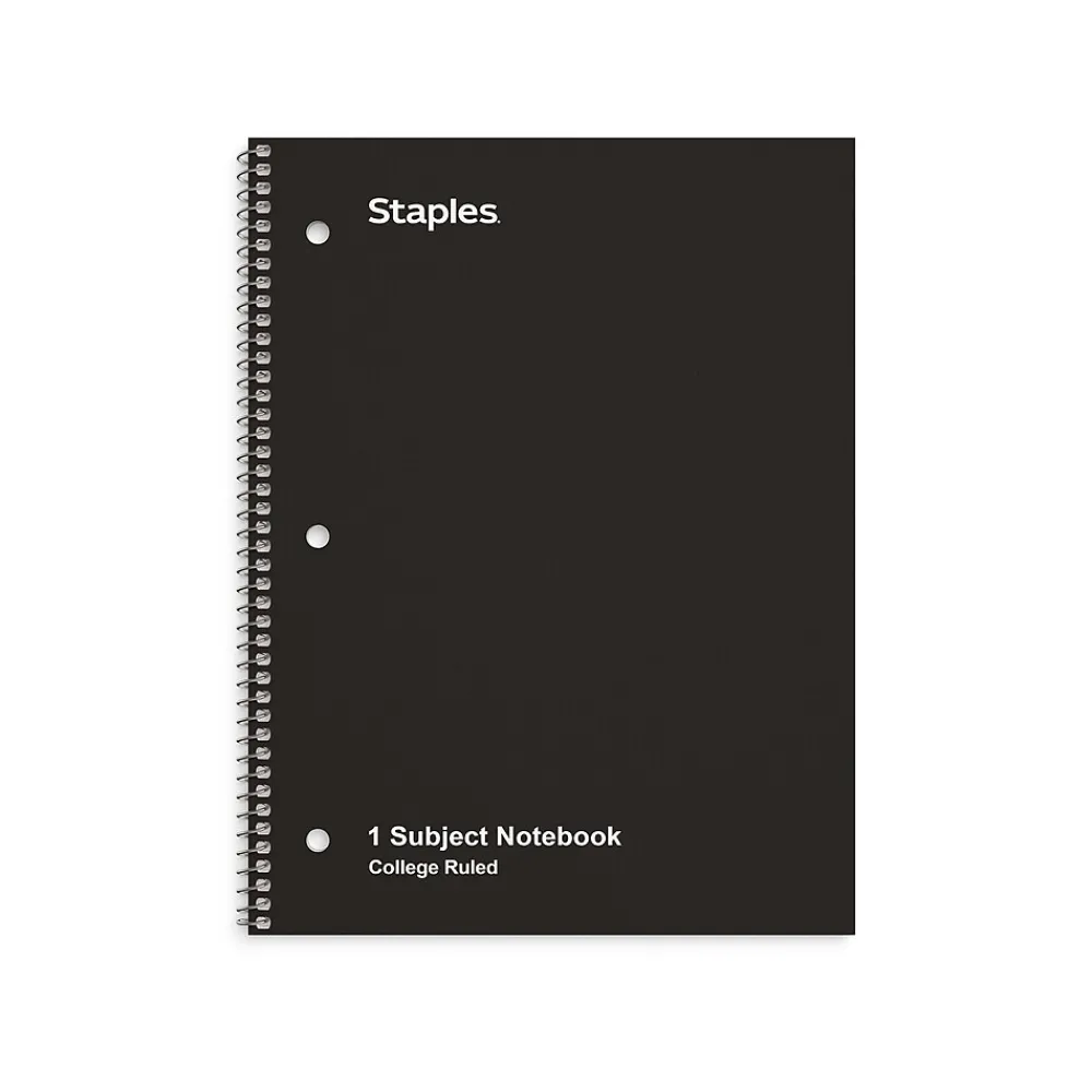 Stock up your supply closet with this 6-pack of 70-sheet notebooks. The spiral binding lets you seamlessly flip through the pages, and the college-ruled paper offers effective use of space and promotes clean writing. This TRU RED black 1-subject notebook features duplex cardstock cover for durability, and the 3-hole punched sheets are easy to insert into binders or manuals.