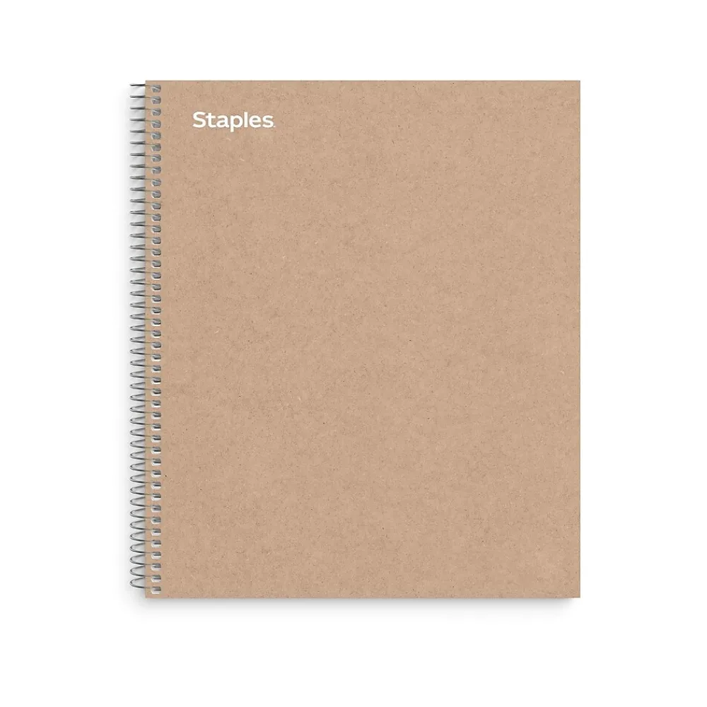 Archive important notes and reports with this 150-sheet notebook. Three pocket dividers store loose papers, while the perforated college-ruled pages allow for easy removal and optimum use of space. This Staples Premium 8.5 x 11-inch brown 3-subject notebook features a solid kraft board cover to resist damage, and the spiral spine lays flat for easy opening and writing.