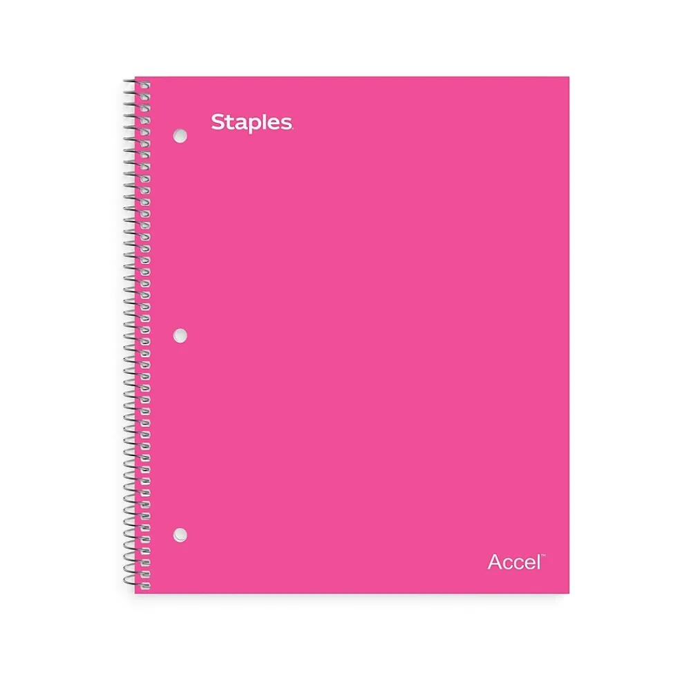 Make note-taking easier with this pink poly notebook. The handy notebook has 100 perforated college-ruled sheets for ample writing space and easy sharing, and a premium poly cover protects the sheets from spills or tears. This Staples Premium 8 x 11-inch pink poly notebook features a pocket divider to provide storage space for loose papers.