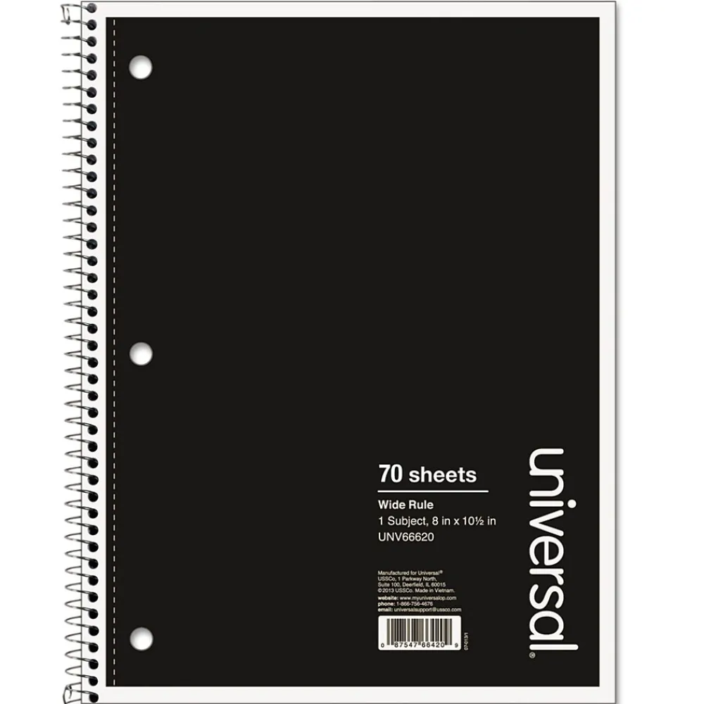 Subject Notebooks|Universal Wirebound Notebook, 8 x 10.5, Wide Ruled, 70 Sheets, Assorted Color Cover (UNV66620)