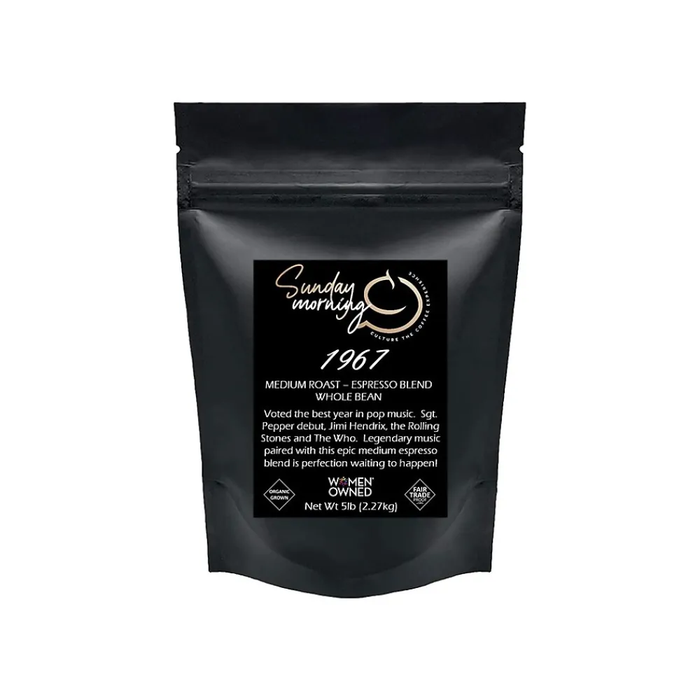 Sunday Morning Coffee’s goal is to earn your trust with great coffee delivered timely and fresh. It is Sunday Morning Coffee’s top priority to provide quality coffee beans from only the most responsible farmers around the globe. Sunday Morning Coffee is committed to becoming your trusted coffee source. 1967 voted the best year in pop music. Sgt. Pepper debut, Jimi Hendrix, the Rolling Stones, and The Who. Legendary music paired with this epic medium espresso blend is perfection waiting to happen.