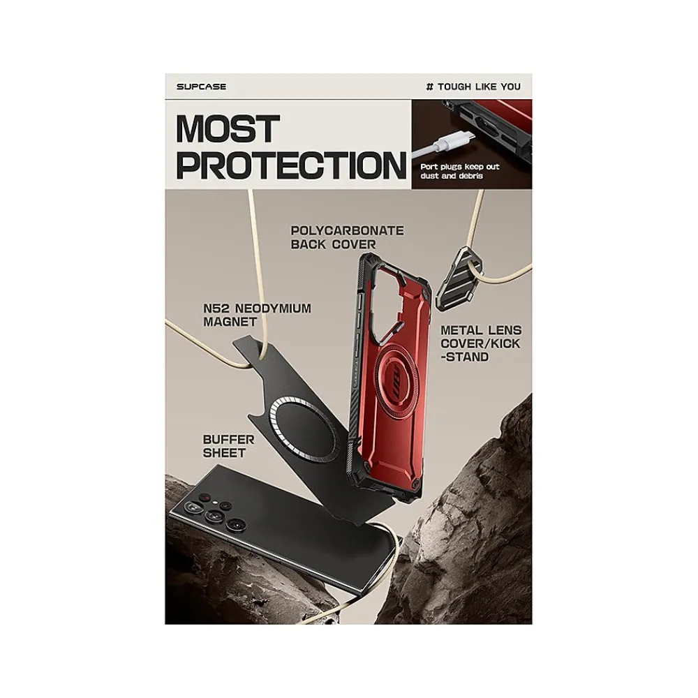 The SUPCASE Unicorn Beetle MAG XT bumper case ensures full-body protection for your Galaxy S24 Ultra (2024). Made of shock-absorbing TPU and unbending polycarbonate, this single-piece snap-on case safeguards your phone from drops and scratches.