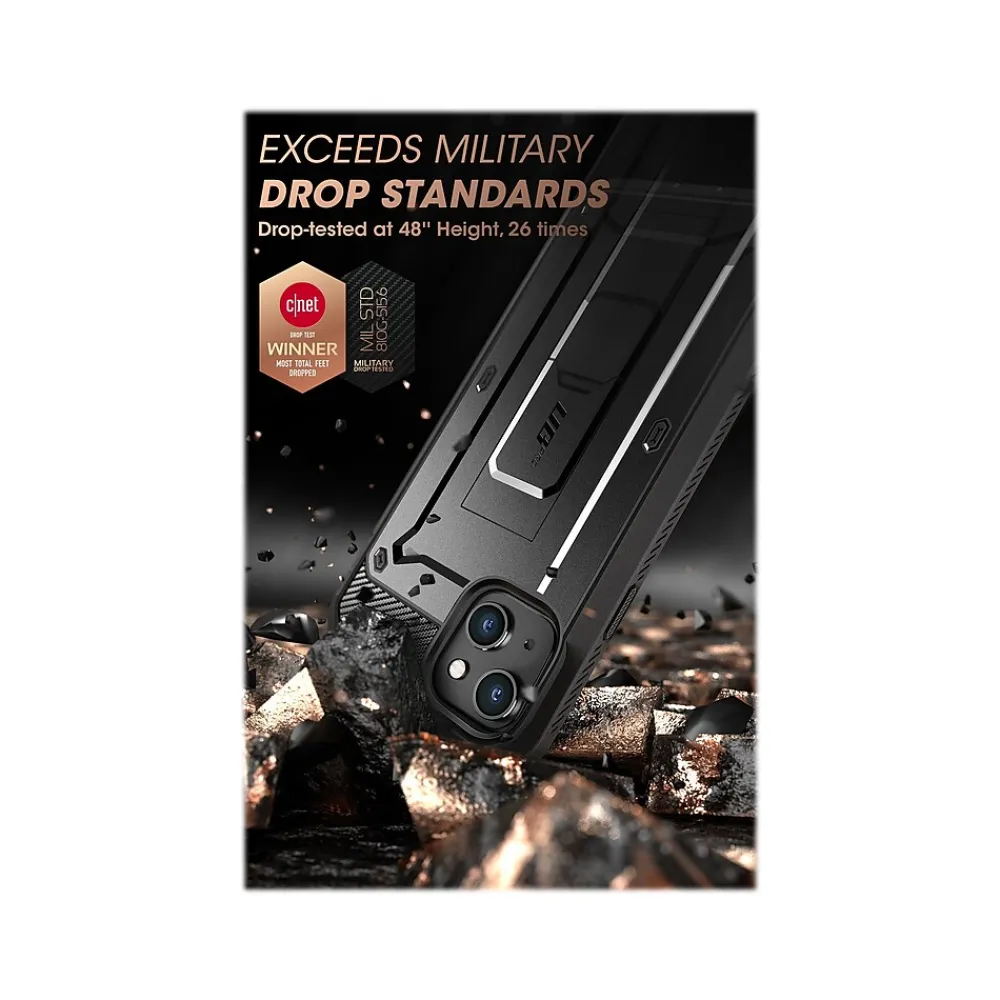 The SUPCASE Unicorn Beetle PRO rugged case ensures 360-degree full-body protection for your iPhone 13 (2021, 6.1″ screen) and iPhone 14 (2022, 6.1″ screen). Precise cutouts allow seamless access to all ports and features. Exceeds military drop standards: drop-tested at 48″ height, 26 times.