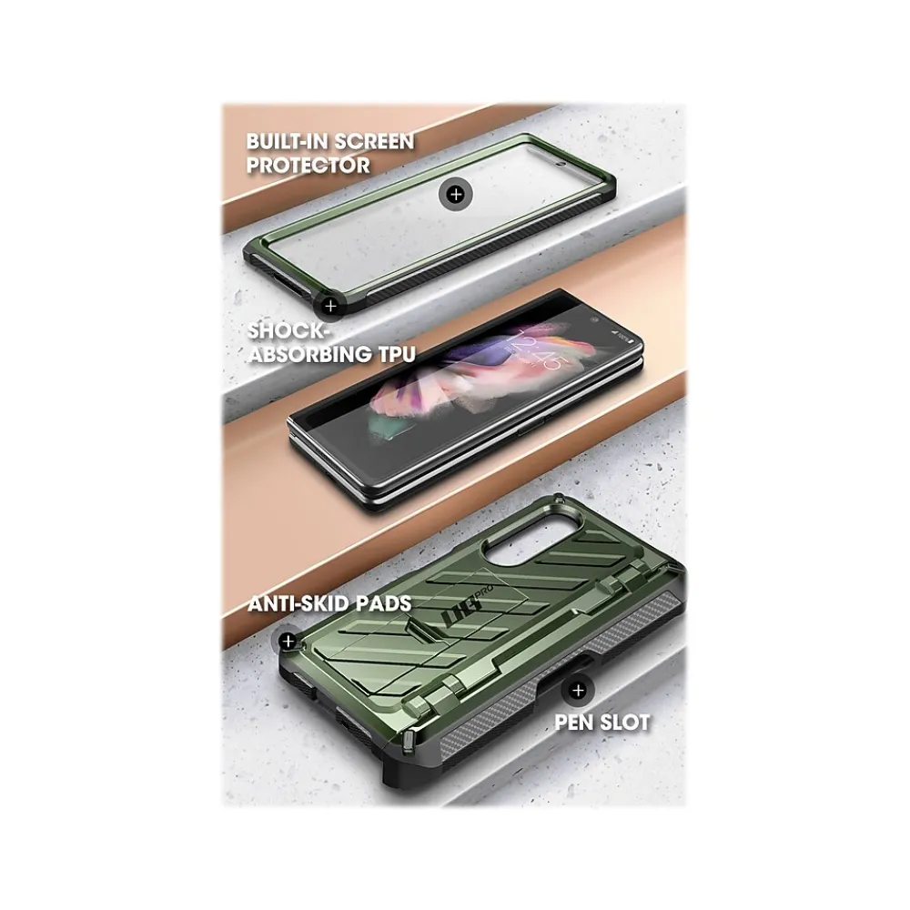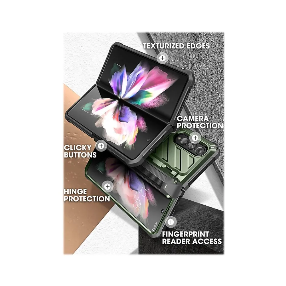 The SUPCASE Unicorn Beetle PRO rugged case ensures 360-degree full-body protection for your Samsung Galaxy Z Fold4 (2022). Features a built-in screen protector. Hinge protection doubles as S Pen holder. Exceeds military drop standards: drop-tested at 48″ height, 26 times.