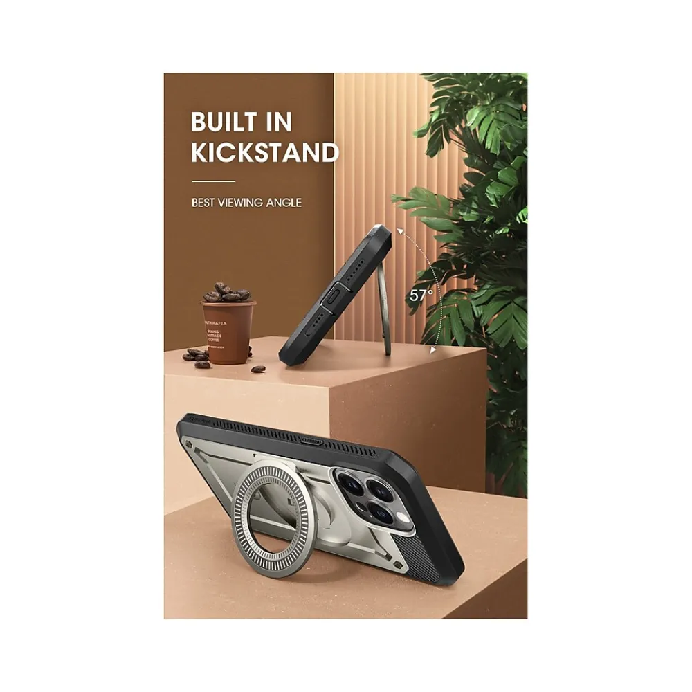 The SUPCASE Unicorn Beetle PRO MAG rugged case offers a full-body protection for your iPhone 15 Pro Max (6.7″ screen). Made of scratch-resistant polycarbonate with TPU bumpers, this single-piece snap-on case safeguards your phone from drops and scratches.