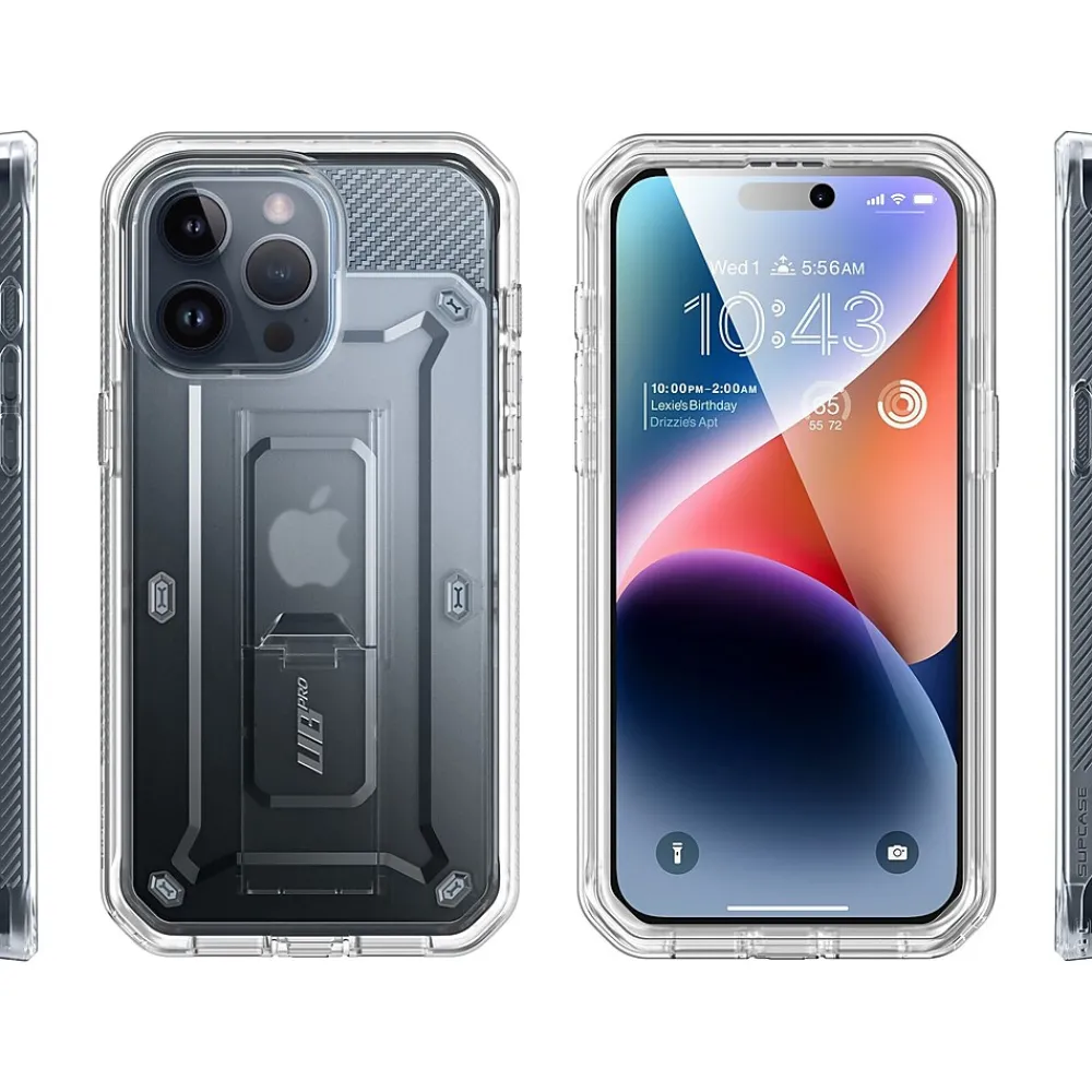 The SUPCASE Unicorn Beetle PRO rugged case ensures full-body protection for your iPhone 15 Pro Max (6.7″ screen). Features a dual-layer unbending polycarbonate back and impact-resistant TPU bumper. Port plugs keep out dust and debris.