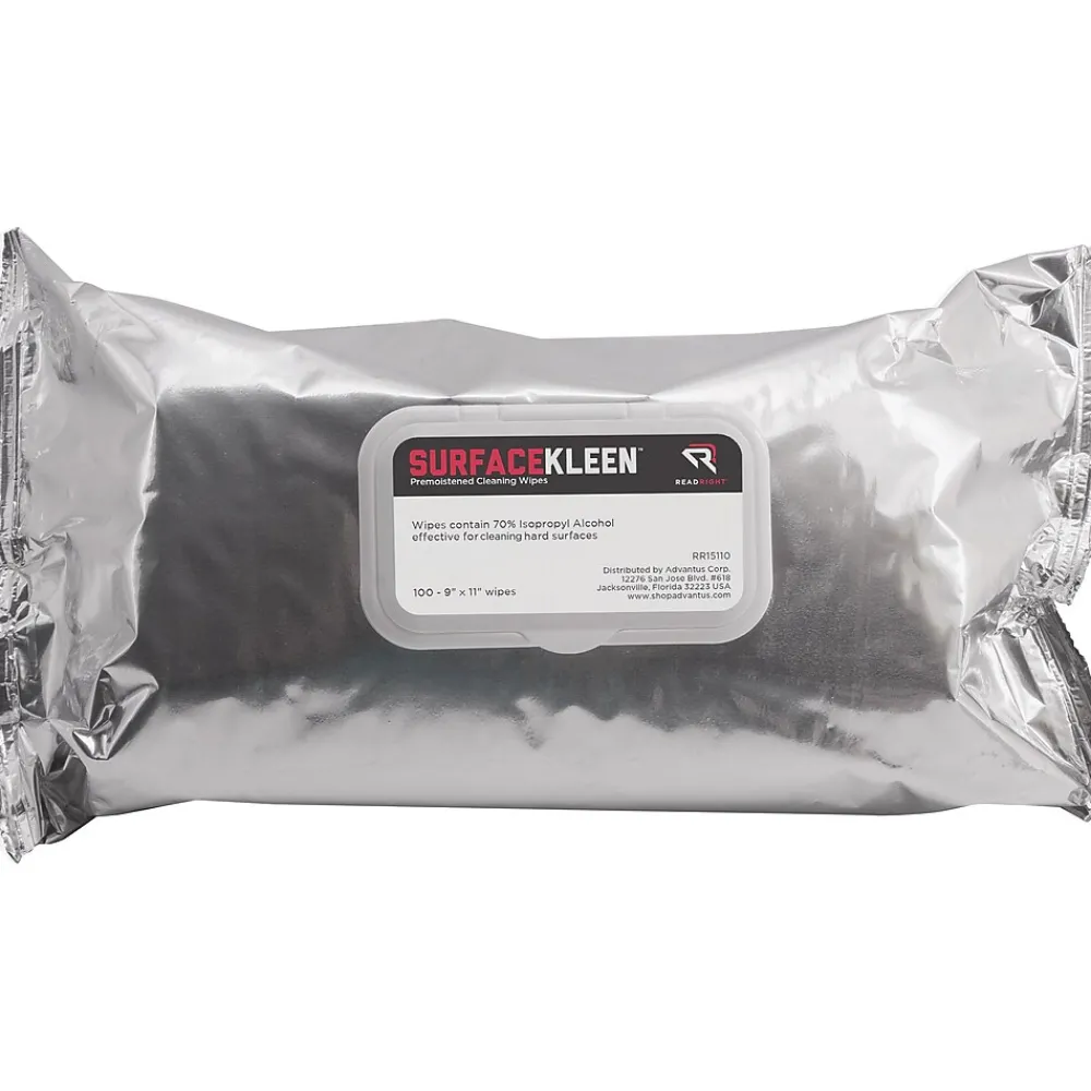 Effectively clean hard surfaces with Read Right® SURFACEKLEEN Pre-Moistened Cleaning Wipes. Formulated with 70% IPA to clean most hard nonporous surfaces and evaporates quickly, leaving nearly zero oil traces. Safe for use on most smartphones and tablets.