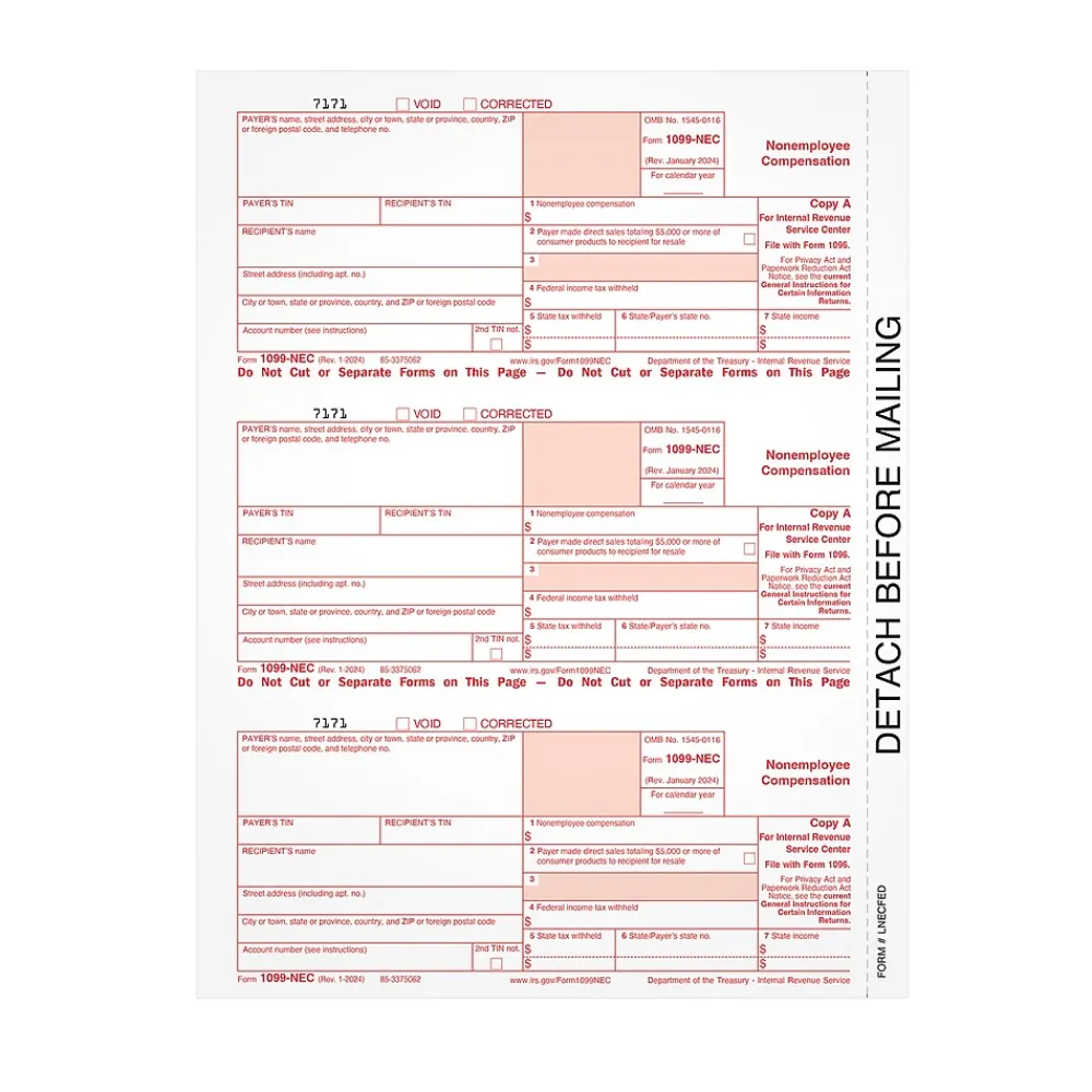 - Pack contains 50 1099-NEC Copy A sheets that yield 150 forms, and ten 1096 summary forms