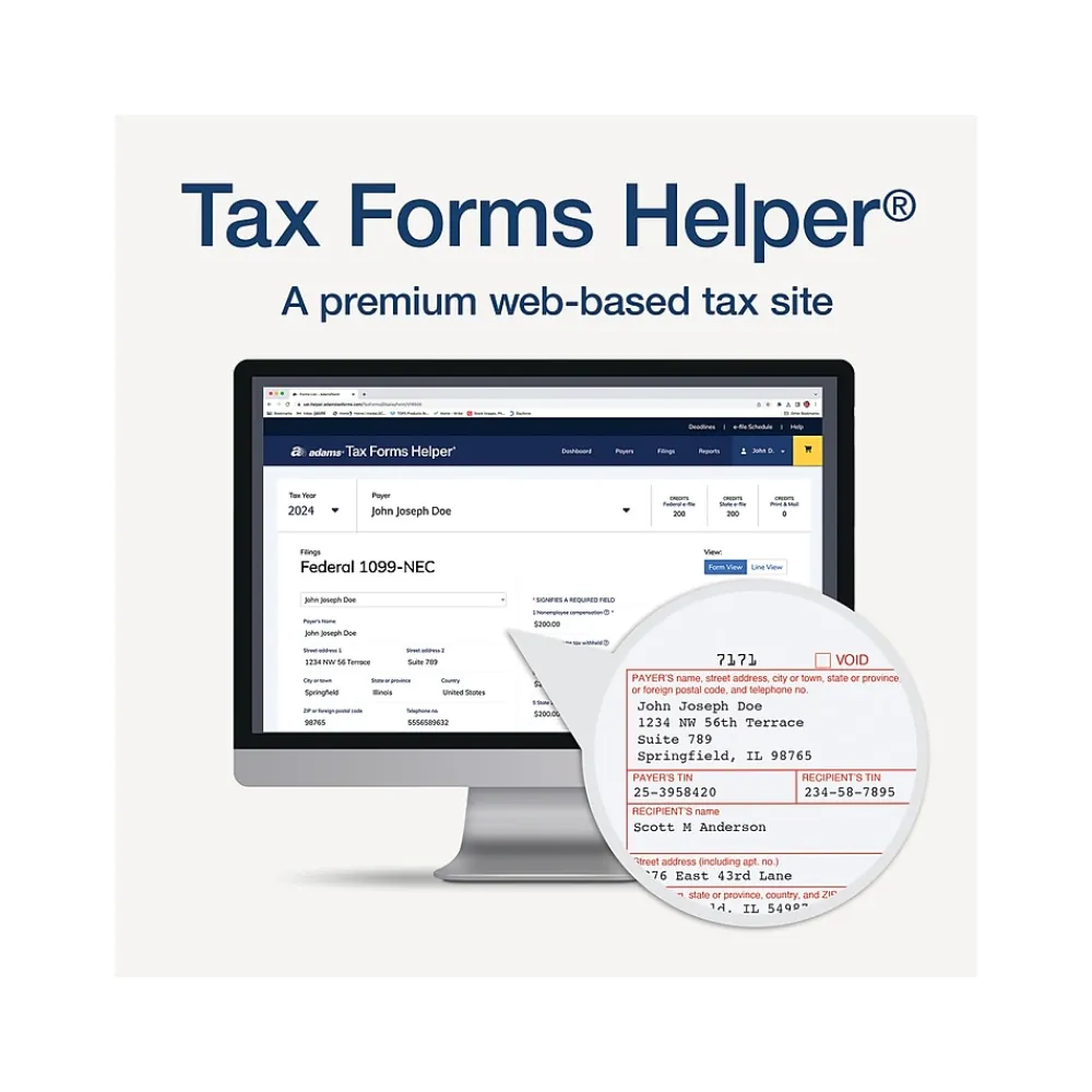 - Pack contains 24 1099-NEC form sets, three 1096 summary forms and the new Adams Tax Forms Helper 2024 (access code and password included in your package)