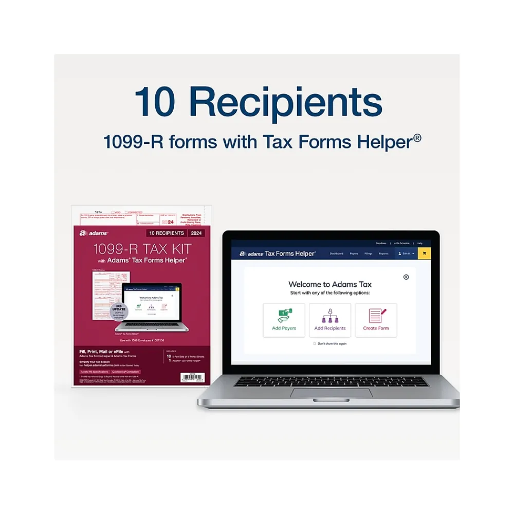 - Pack contains ten 1099-R tax form sets, plus access to Adams Tax Forms Helper