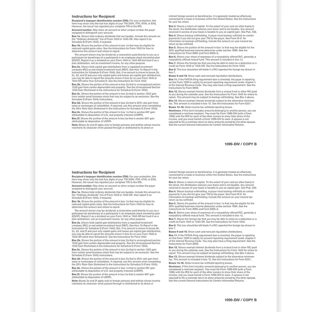 | Tax Form Pack Size | 1099-DIV |