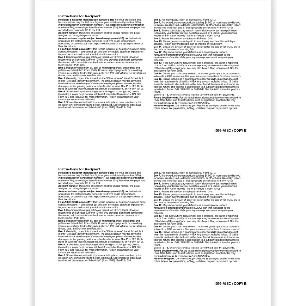 - Single-part, 2-up: Recipient Copy B
