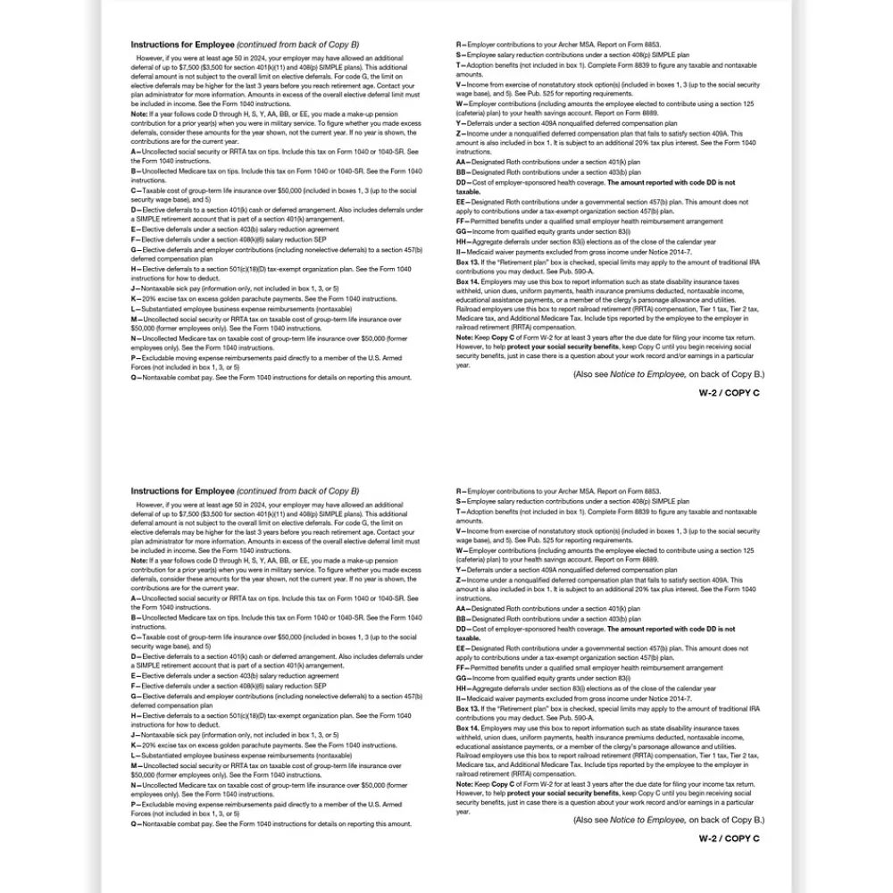 - 2-up: Employee Copy C and/or State, City, or Local Copy 2